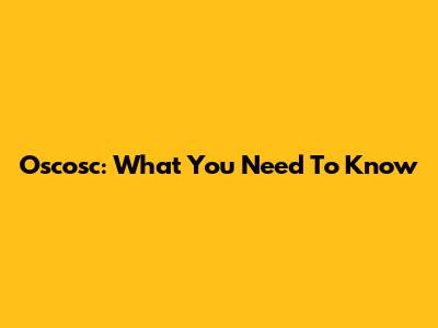 Oscosc: What You Need To Know