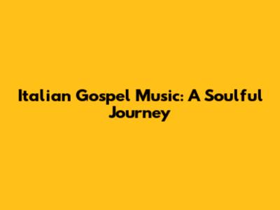 Italian Gospel Music: A Soulful Journey