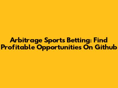 Arbitrage Sports Betting: Find Profitable Opportunities On Github