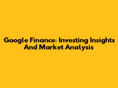 Google Finance: Investing Insights And Market Analysis