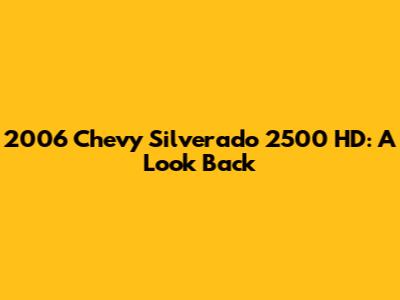 2006 Chevy Silverado 2500 HD: A Look Back