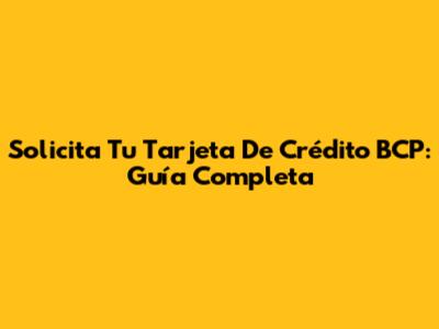Solicita Tu Tarjeta De Crédito BCP: Guía Completa