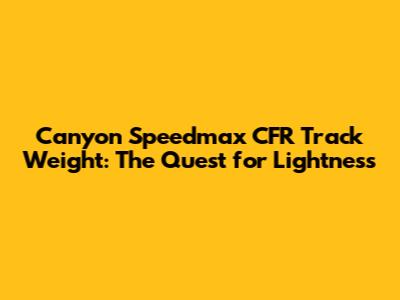Understanding the Canyon Speedmax CFR Track Weight