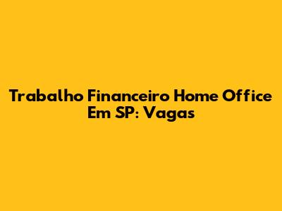 Trabalho Financeiro Home Office Em SP: Vagas