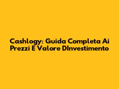 Cashlogy: Guida Completa Ai Prezzi E Valore D'Investimento