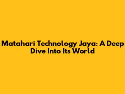 Matahari Technology Jaya: A Deep Dive Into Its World