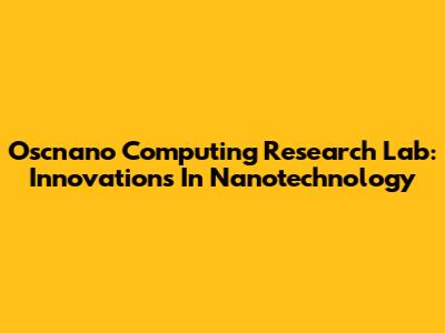 Oscnano Computing Research Lab: Innovations In Nanotechnology