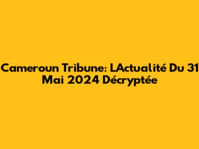Cameroun Tribune: L'Actualité Du 31 Mai 2024 Décryptée