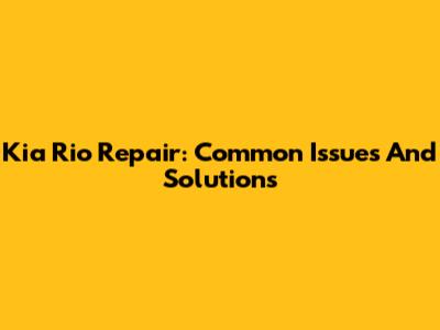 Kia Rio Repair: Common Issues And Solutions