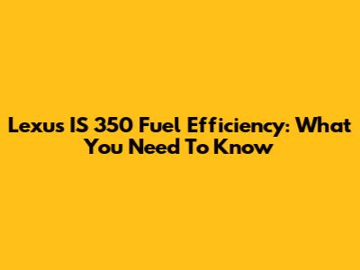 Lexus IS 350 Fuel Efficiency: What You Need To Know