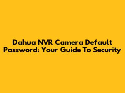 Dahua NVR Camera Default Password: Your Guide To Security