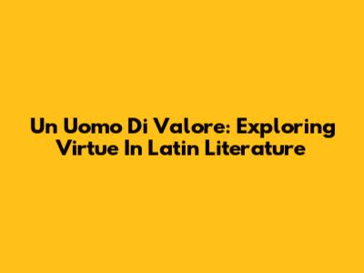 Un Uomo Di Valore: Exploring Virtue In Latin Literature