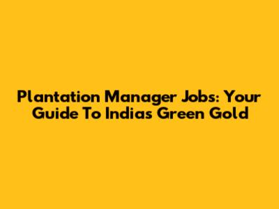 Plantation Manager Jobs: Your Guide To India's Green Gold