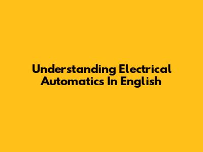 Understanding Electrical Automatics In English