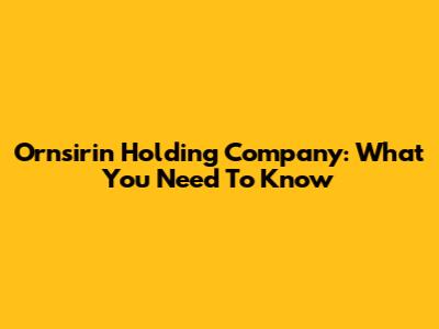 Ornsirin Holding Company: What You Need To Know