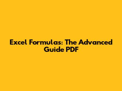 Excel Formulas: The Advanced Guide PDF