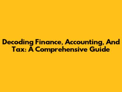 Decoding Finance, Accounting, And Tax: A Comprehensive Guide