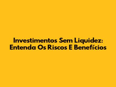 Investimentos Sem Liquidez: Entenda Os Riscos E Benefícios
