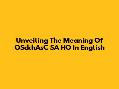 Unveiling The Meaning Of OSckhAsC SA HO In English