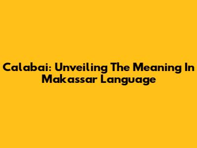 Calabai: Unveiling The Meaning In Makassar Language