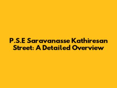 P.S.E Saravanasse Kathiresan Street: A Detailed Overview