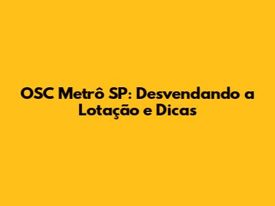 O Que é OSC Metrô SP e Como Funciona?