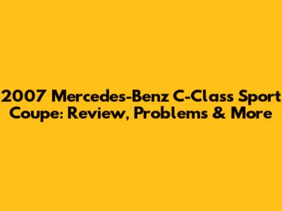 2007 Mercedes-Benz C-Class Sport Coupe: Review, Problems & More