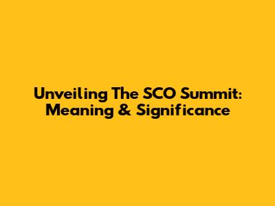 Unveiling The SCO Summit: Meaning & Significance
