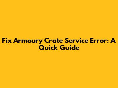 Fix Armoury Crate Service Error: A Quick Guide