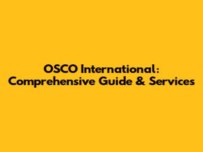 OSCO International: Comprehensive Guide & Services