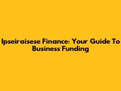 Ipseiraisese Finance: Your Guide To Business Funding