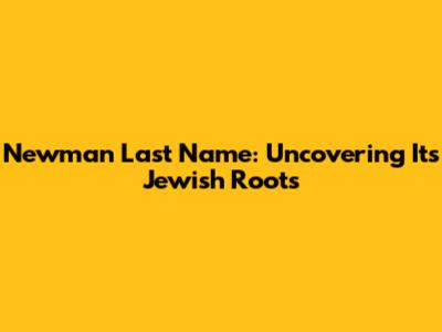 Newman Last Name: Uncovering Its Jewish Roots