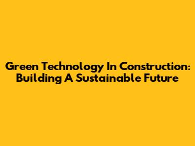 Green Technology In Construction: Building A Sustainable Future