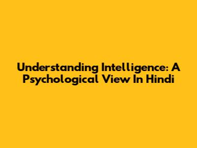 Understanding Intelligence: A Psychological View In Hindi