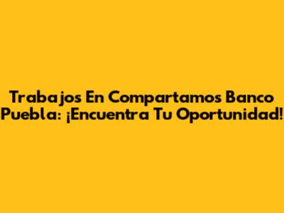 Trabajos En Compartamos Banco Puebla: ¡Encuentra Tu Oportunidad!