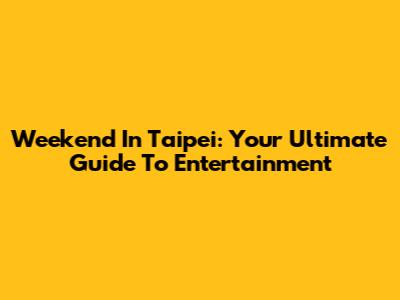 Weekend In Taipei: Your Ultimate Guide To Entertainment