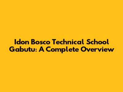 Idon Bosco Technical School Gabutu: A Complete Overview