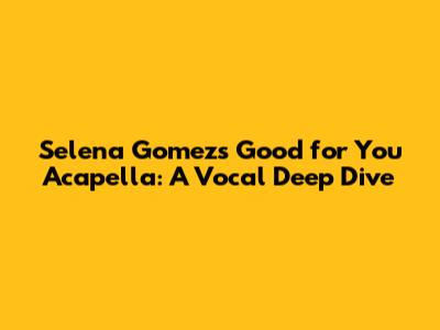 Hey everyone! Today, we're diving deep into the amazing world of Selena Gomez's music, specifically her hit song "Good for You." We're not just listening to the regular track; we're breaking down the acapella version. For those who might not know, an acapella is a performance solely with vocals, no instruments. It's like stripping a song down to its bare essentials – the voice! This gives us a fantastic opportunity to really appreciate Selena's vocal talents, her technique, and the emotion she pours into the song. So, grab your headphones, get comfy, and let's explore the intricate layers of "Good for You" acapella. We'll uncover what makes this version so special, from the subtle nuances in her delivery to the power of her vocal control. Get ready for a musical journey that will deepen your appreciation for both Selena Gomez and the art of acapella. Let's start this adventure, shall we?