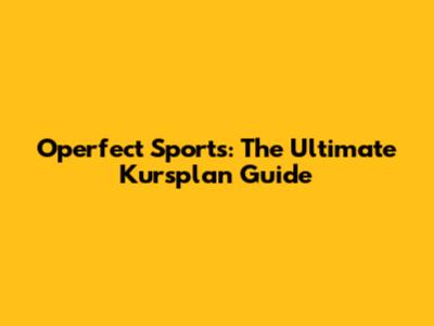 Operfect Sports: The Ultimate Kursplan Guide