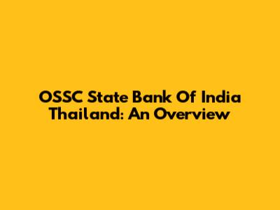 OSSC State Bank Of India Thailand: An Overview