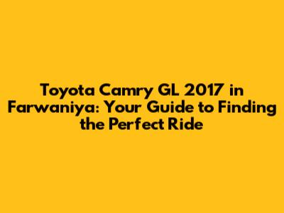 The Toyota Camry GL 2017 in Farwaniya represents an excellent choice for anyone seeking a reliable, comfortable, and efficient vehicle. Its reputation for durability, spacious interior, and strong resale value make it a smart investment. By understanding the key features to look for, knowing how to find the best deals, and following essential maintenance tips, you can ensure a satisfying ownership experience. Whether you're a first-time car buyer or a seasoned driver, the Camry GL 2017 offers a blend of practicality and style that's hard to beat. So, go ahead and start your search today – your perfect ride awaits!