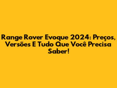 Range Rover Evoque 2024: Preços, Versões E Tudo Que Você Precisa Saber!