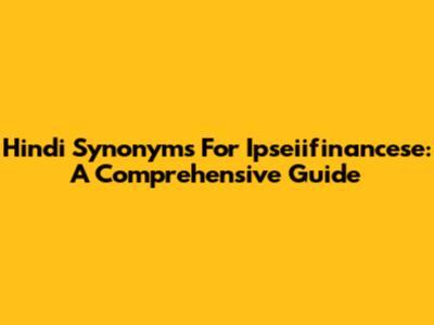Hindi Synonyms For 'Ipseiifinancese': A Comprehensive Guide