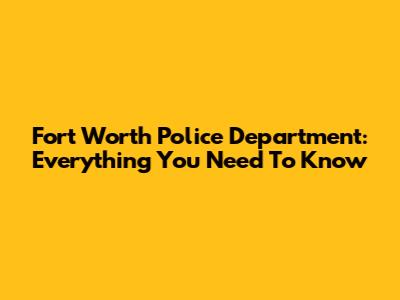 Fort Worth Police Department: Everything You Need To Know