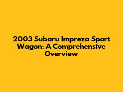 2003 Subaru Impreza Sport Wagon: A Comprehensive Overview