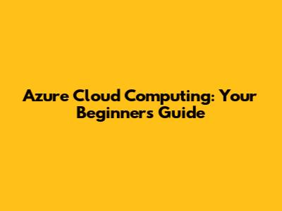 Azure Cloud Computing: Your Beginner's Guide