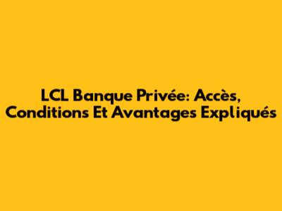 LCL Banque Privée: Accès, Conditions Et Avantages Expliqués